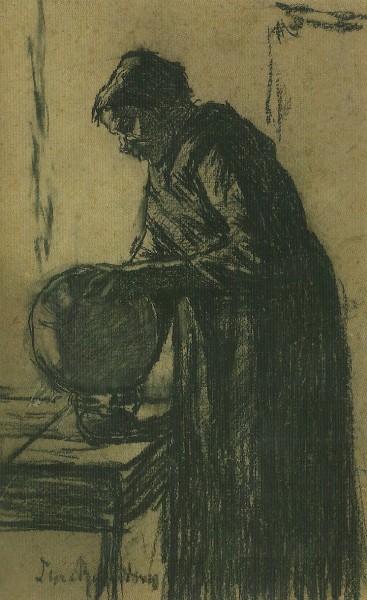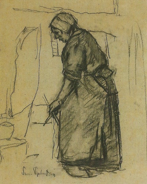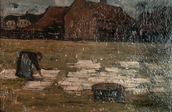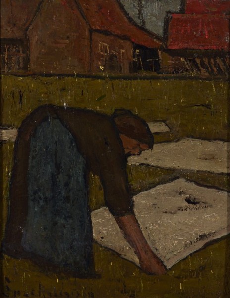 Boerenvrouw op klompen aan het wassen (sri0330)