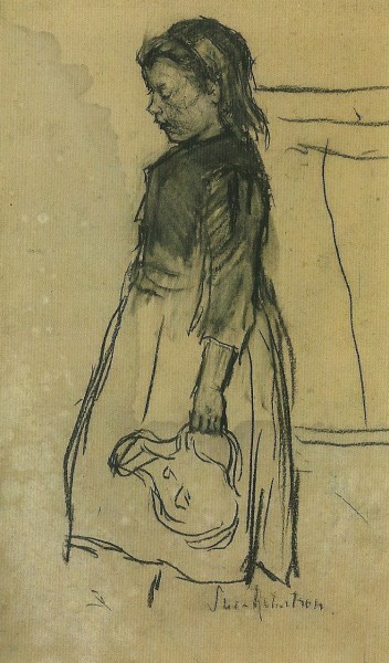 Boerenvrouw op rug gezien met emmer (sri1383)
