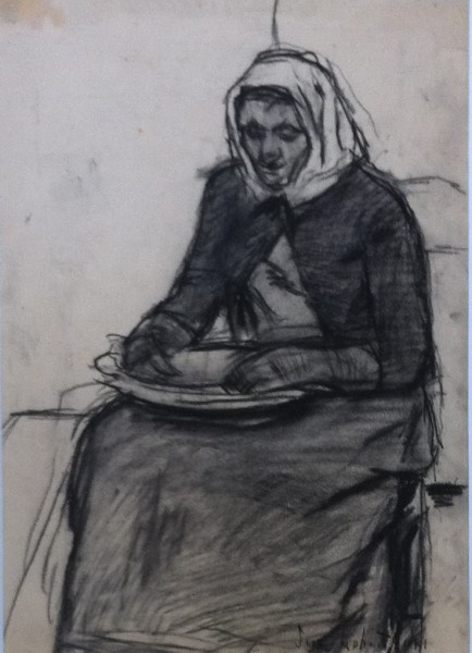 Boerenvrouw in stoel aardappelen schillend (sri0073)