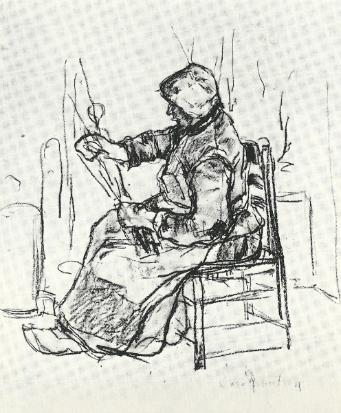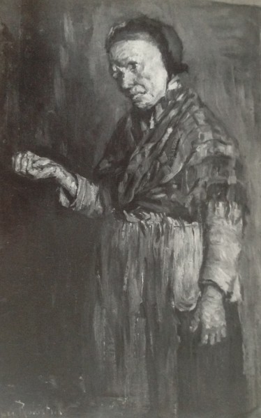 Oude boerenvrouw zittend op een stoel (sri0597)