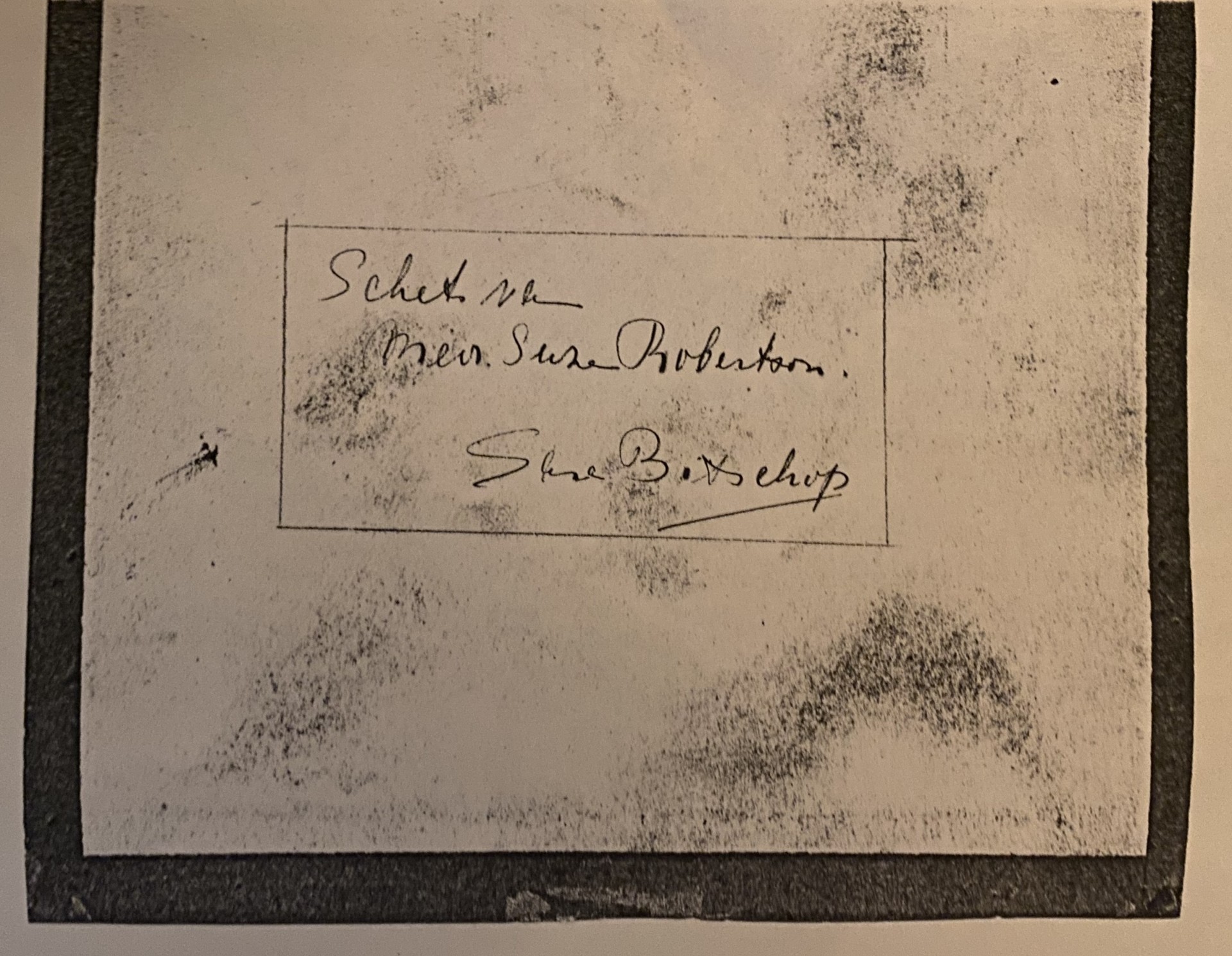 op achterzijde ‘Schets van Suze Robertson / Sara Bisschop’