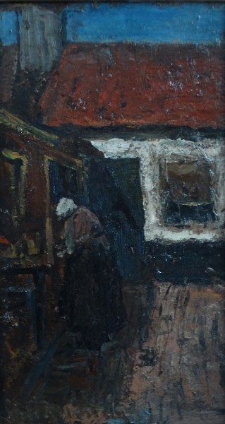 Boerin op een binnenplaats (Noordwijk) (sri1425)