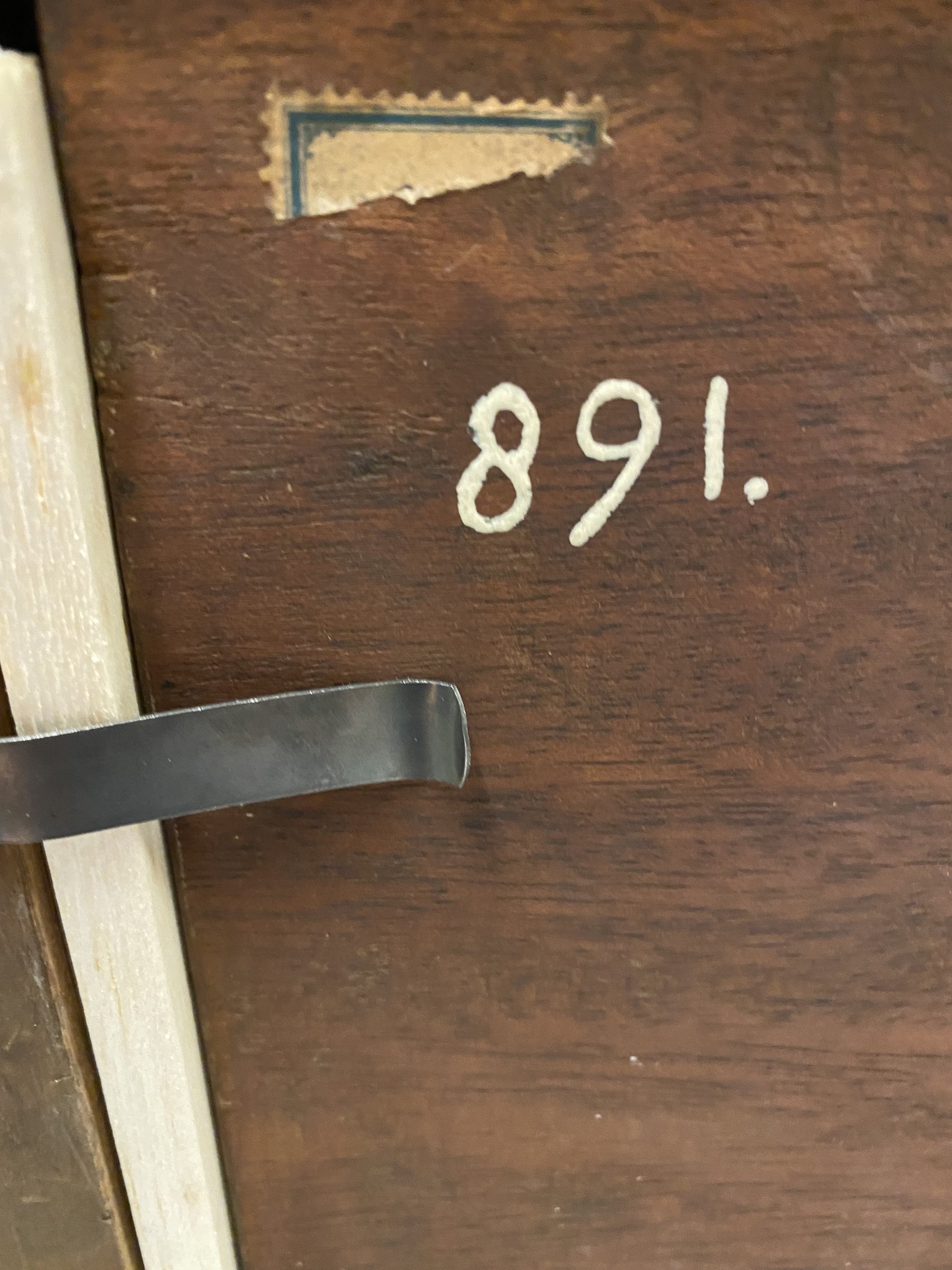 - etiket van 'Papestraat Den Haag'. Op het adres Papestraat 22 was Kunsthandel / lijstenmaker J.J. Biesing gevestigd (tussen 1883-1903)