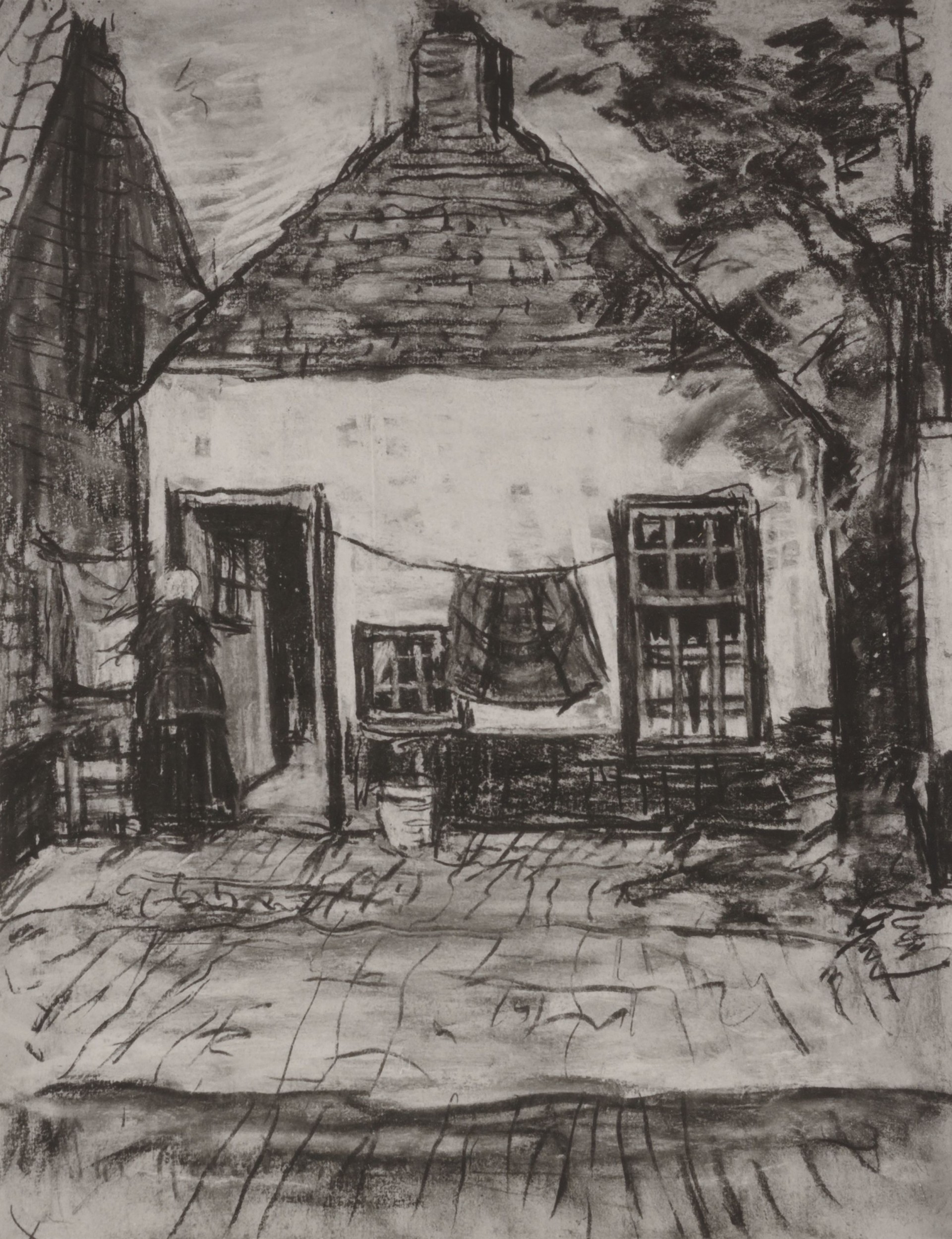 Vrouw, de was ophangend op een plaatsje in Vollenhoven